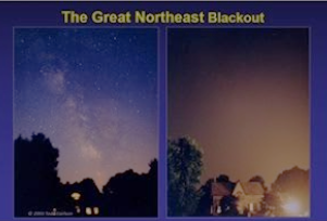 Anyone who wanted to see the Northern Lights earlier this year knows how difficult it is to find dark skies in Maynard. Likewise, if you have been in a darker environment, you have probably noticed how much more of the night sky is visible without the lights. If you were around in 2003, you might remember the spectacular night sky. The picture below shows the sky during the 2003 blackout and the same location today.